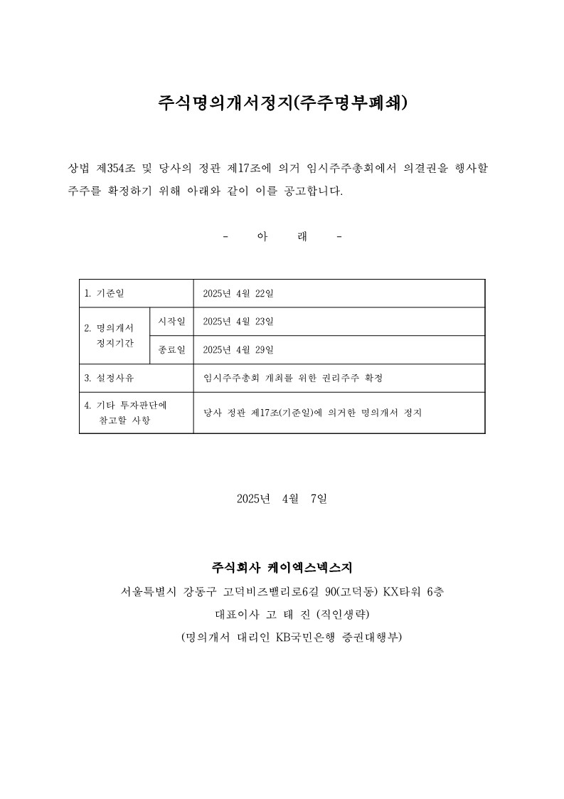 주주명의개서정지(주주명부폐쇄)