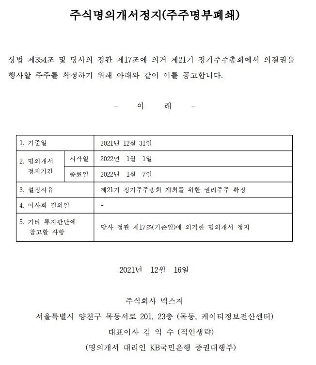 주주명의개서정지(주주명부페쇄)